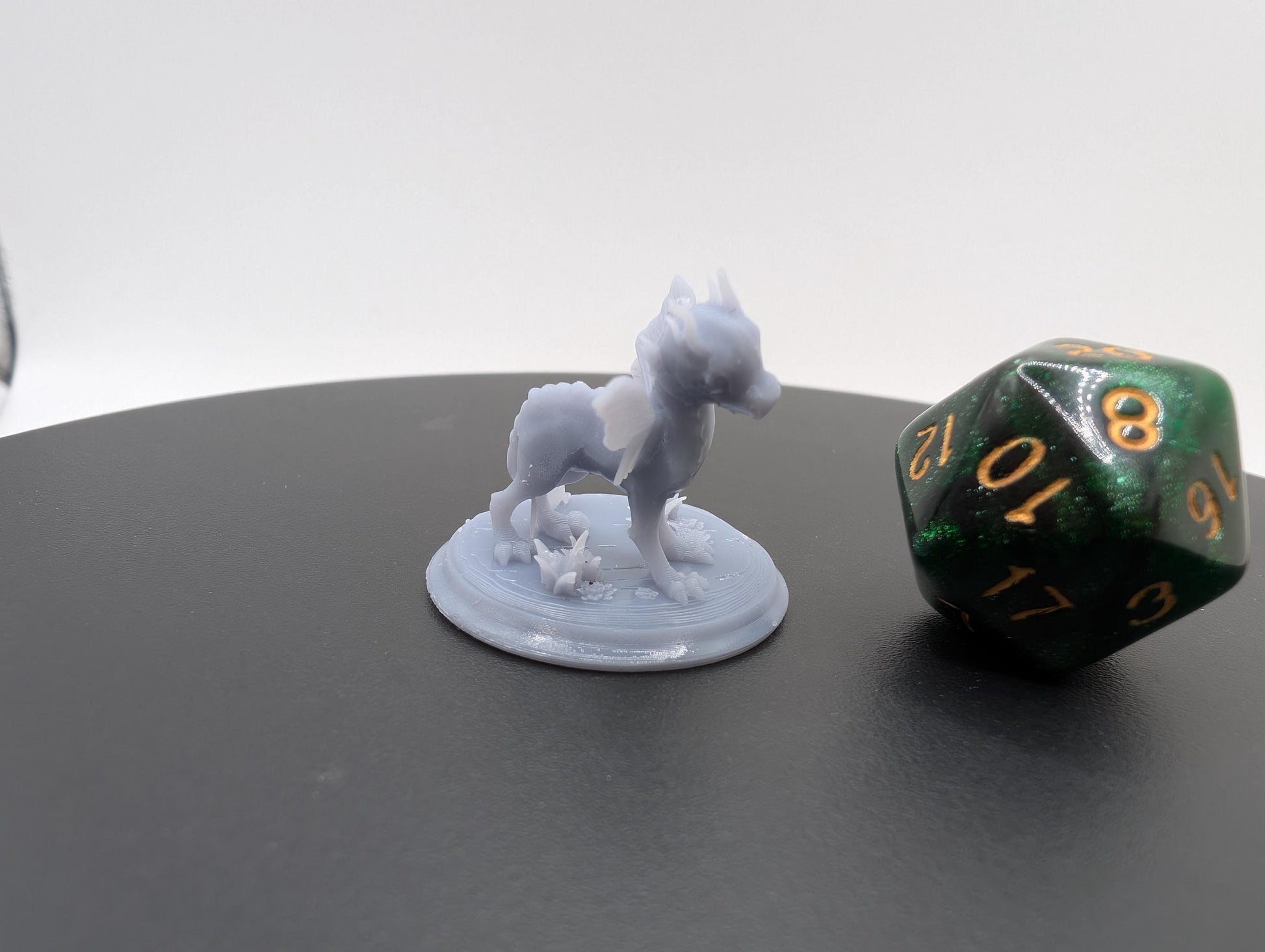 The baby comes attached to a custom 25 mm base. All minis are sold unpainted (grey).