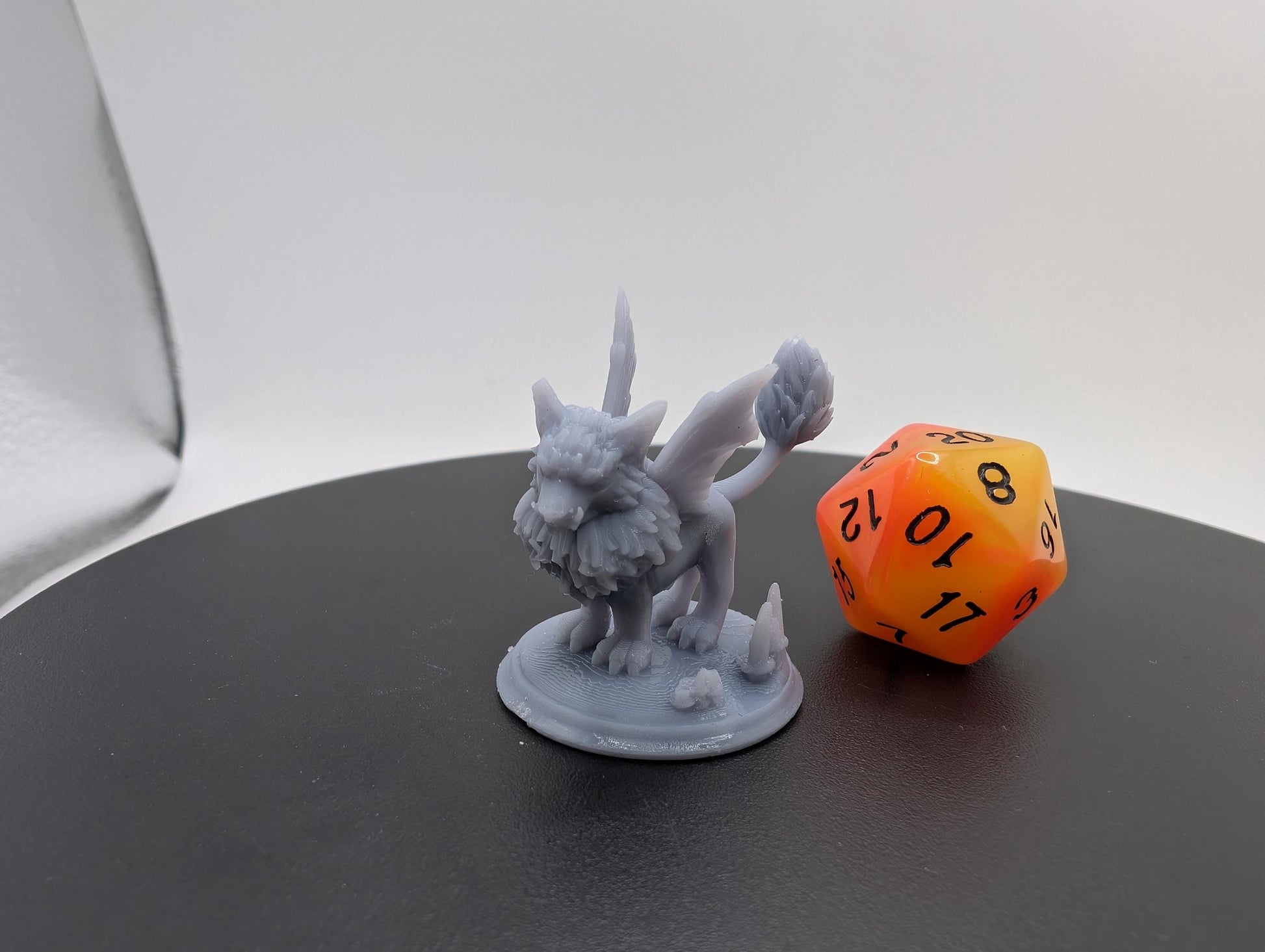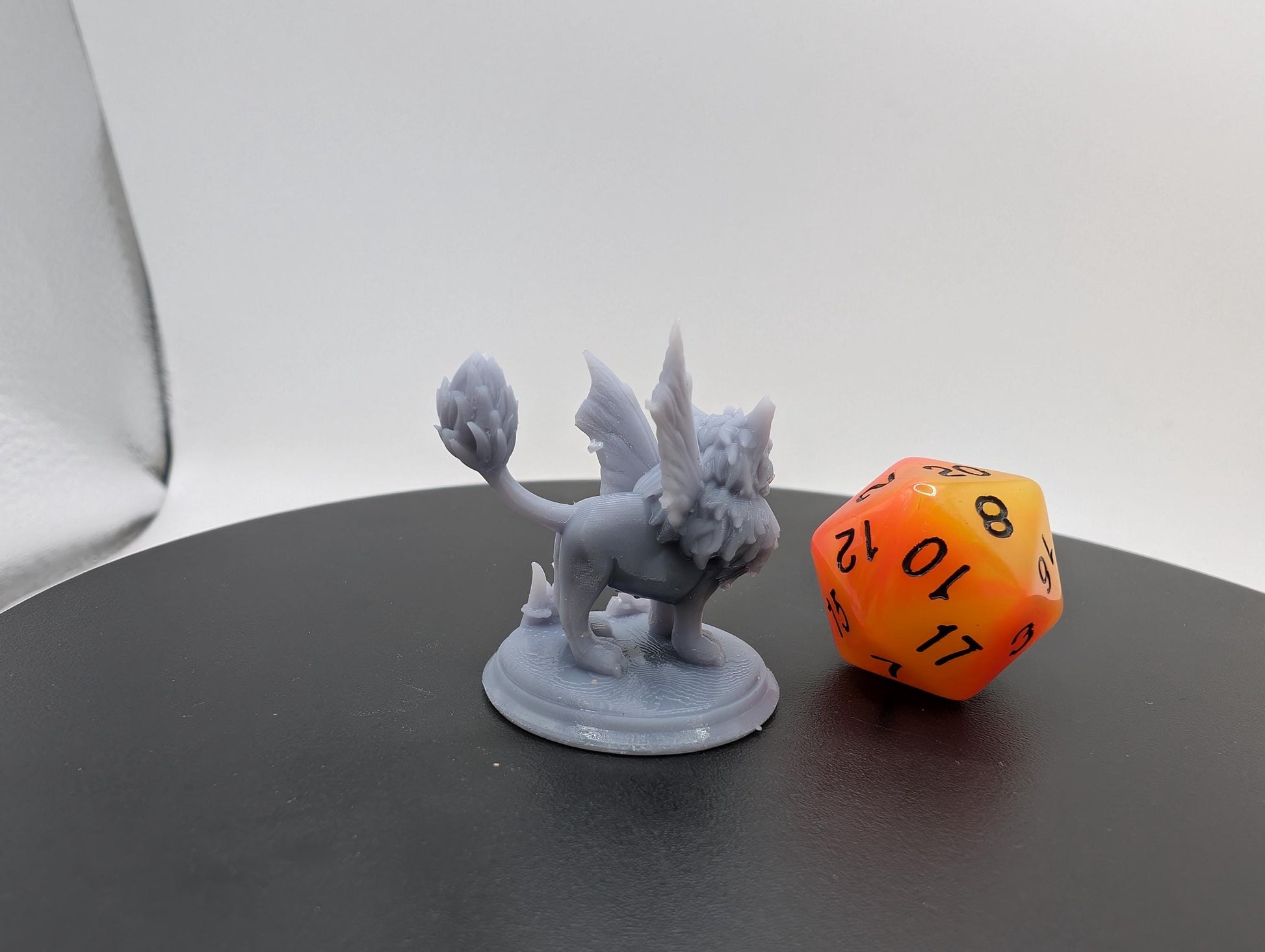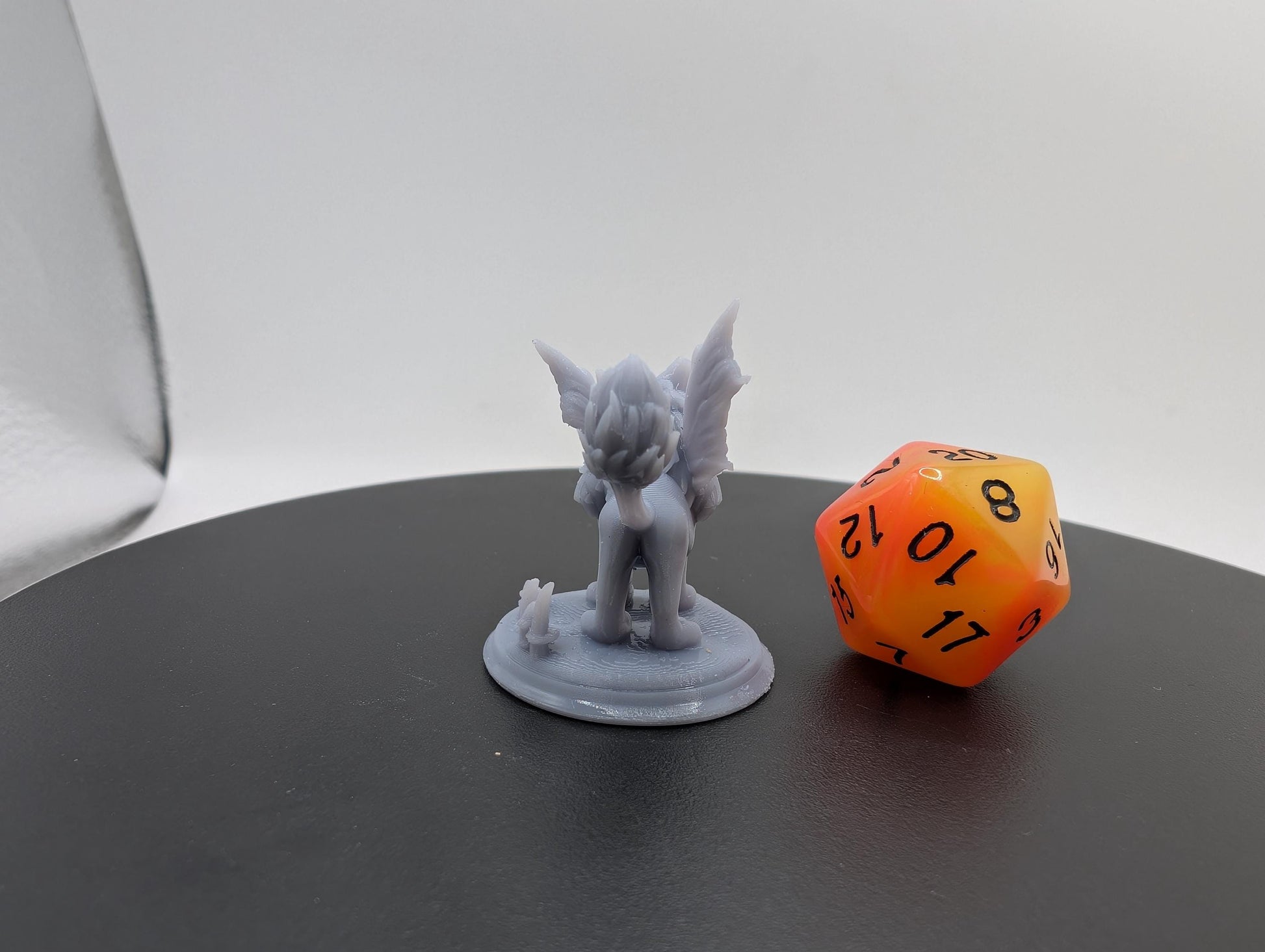 The baby comes attached to a custom 25 mm base. All minis are sold unpainted (grey).