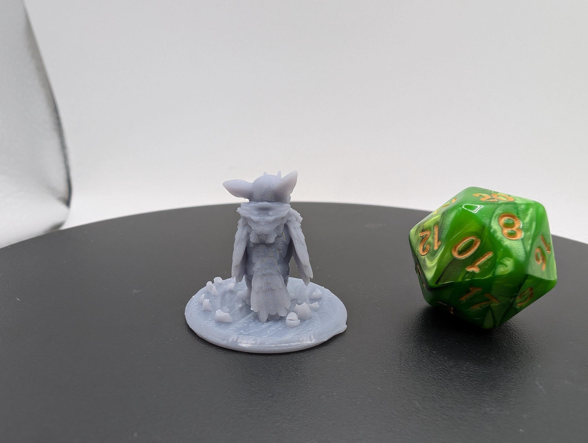 The baby comes attached to a custom 25 mm base. All minis are sold unpainted (grey).