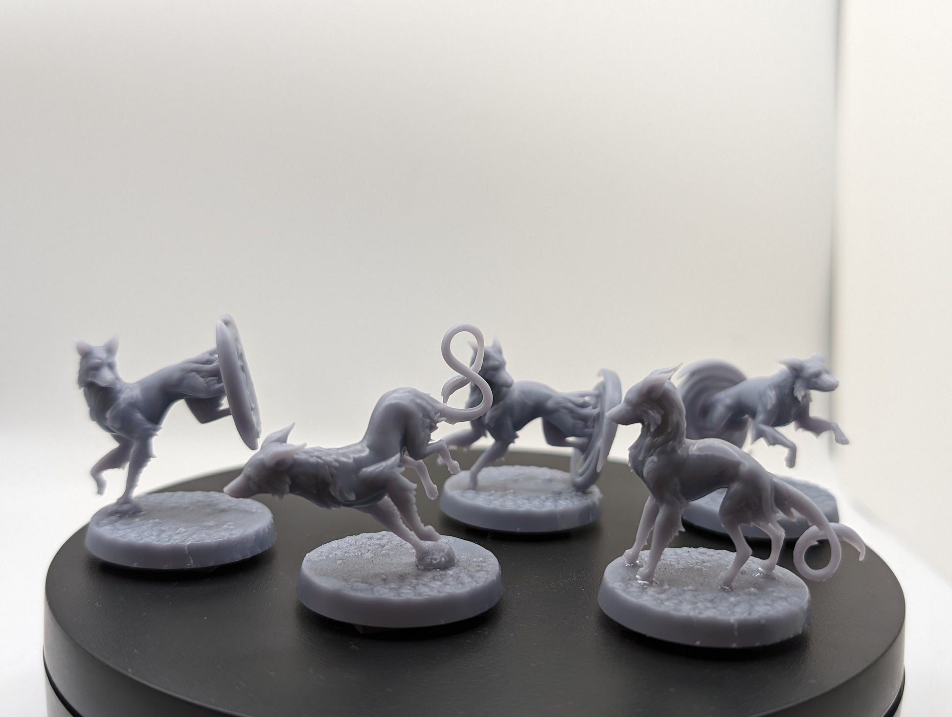 Get the entire pack for a small price! Blink dogs add a fun and chaotic element to your adventure with their teleport ability. Whether seeing them in the forest, fighting them in the Fey wilds, or having your adventurer tame one as a pet! All 5 Blink Dogs are on a sculpted 32mm Base.