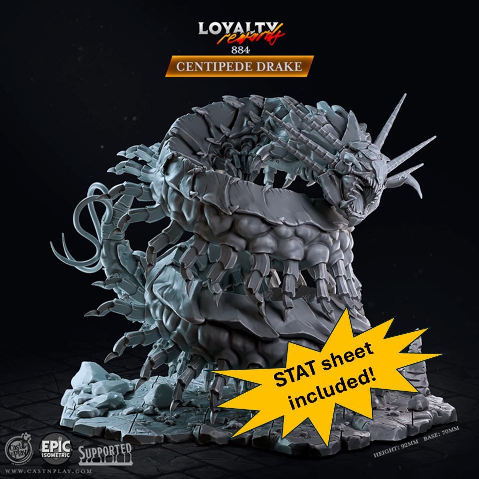 This centipede-drake monstrosity will chill the blood of even the most hardened adventurer. Surely, there are just too many legs. This massive mini stands 92 mm tall and comes on a custom 70 mm base.