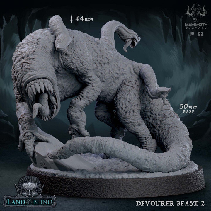 Each Devourer Beast is a 32mm Scale with a custom 50mm base.