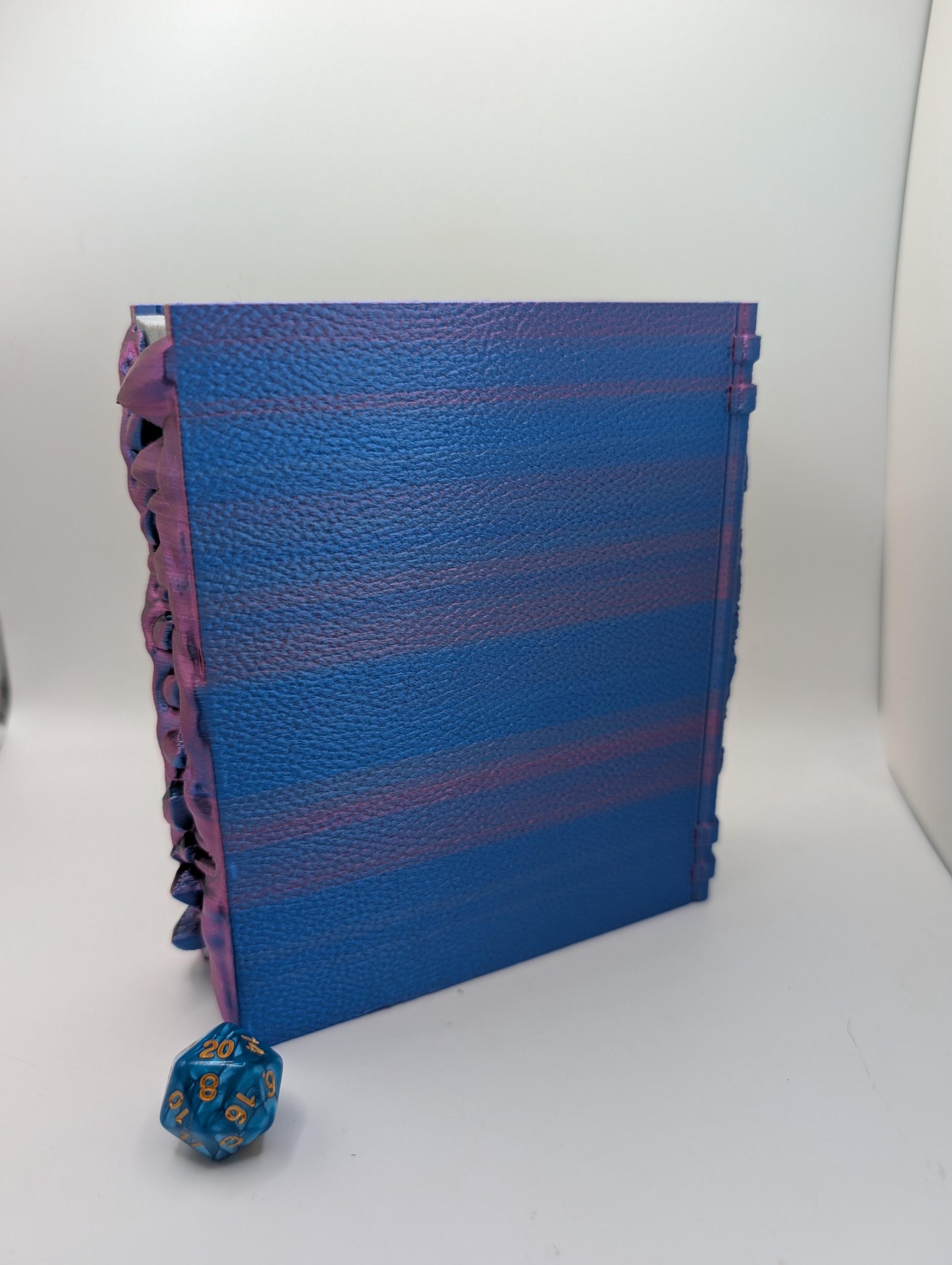 These tomes are perfect for travelling to your next adventure. whether carrying your dice, miniature, spell cards, or secret snacks! Select the color of the outside (or message us directly for a custom color), then choose between 4 differerent insert types (a dice tower with storage, 3 sections, working well for a mini, dice and spell cards or a usable dice tray, 2 sections or 1 large section for maximum storage or dice tray), then select the color you want the "pages" printed, from gold, tan, white, or silver. Small magnets are pre-installed to help keep the insert from slipping out accidentally.