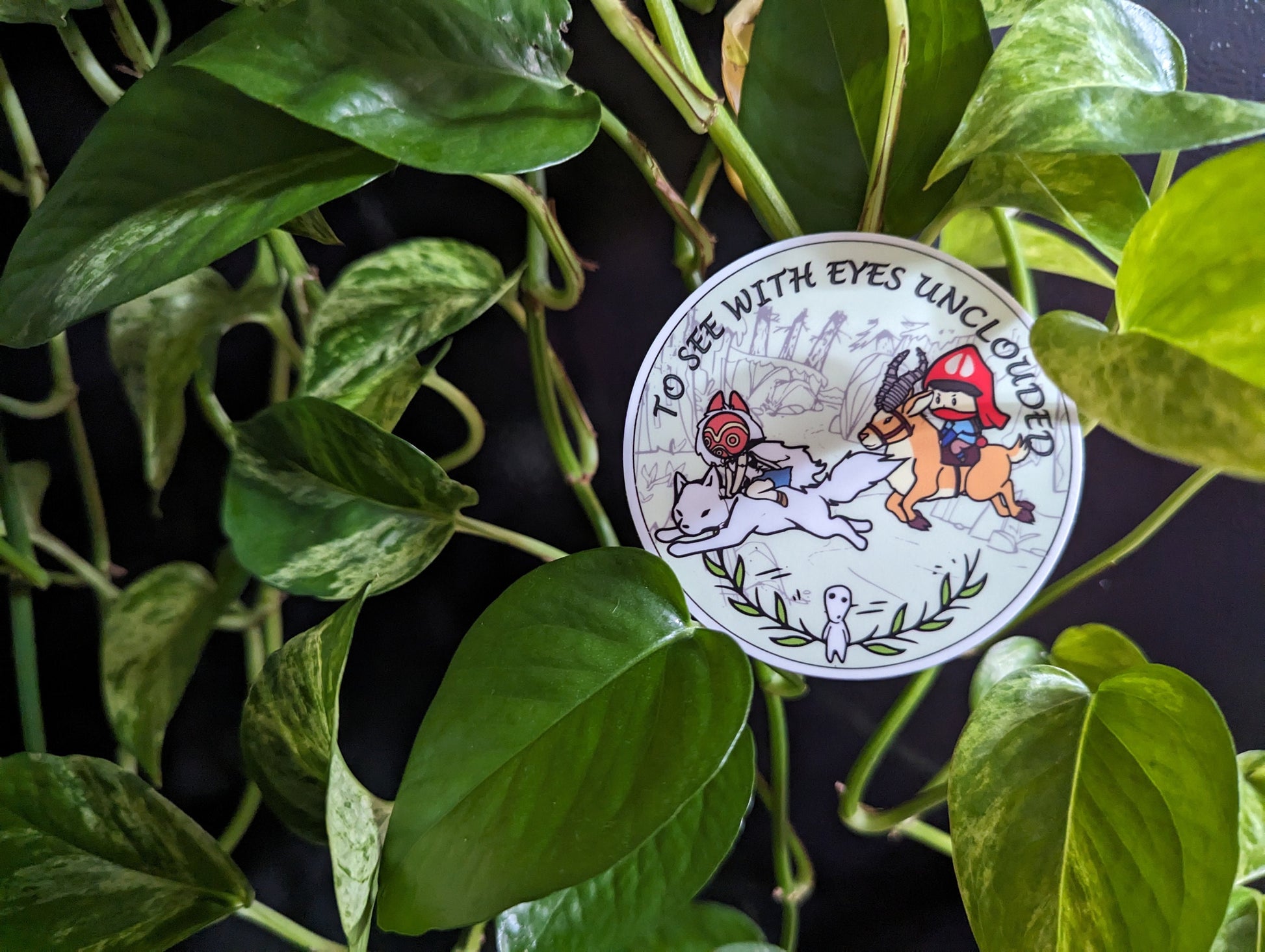 When the harmony between humans, animals, and gods begins to crumble, the young and infected Ashitaka tries to see with "eyes unclouded" and bring an end to this violence with the help of the wolf-girl. This die-cut sticker is made of durable vinyl to help protect it from scratches, water, and sunlight. It measures approximately 3 x 3 inches. I have drawn this design myself, but they are printed by stickermule.com to ensure a high-quality product.