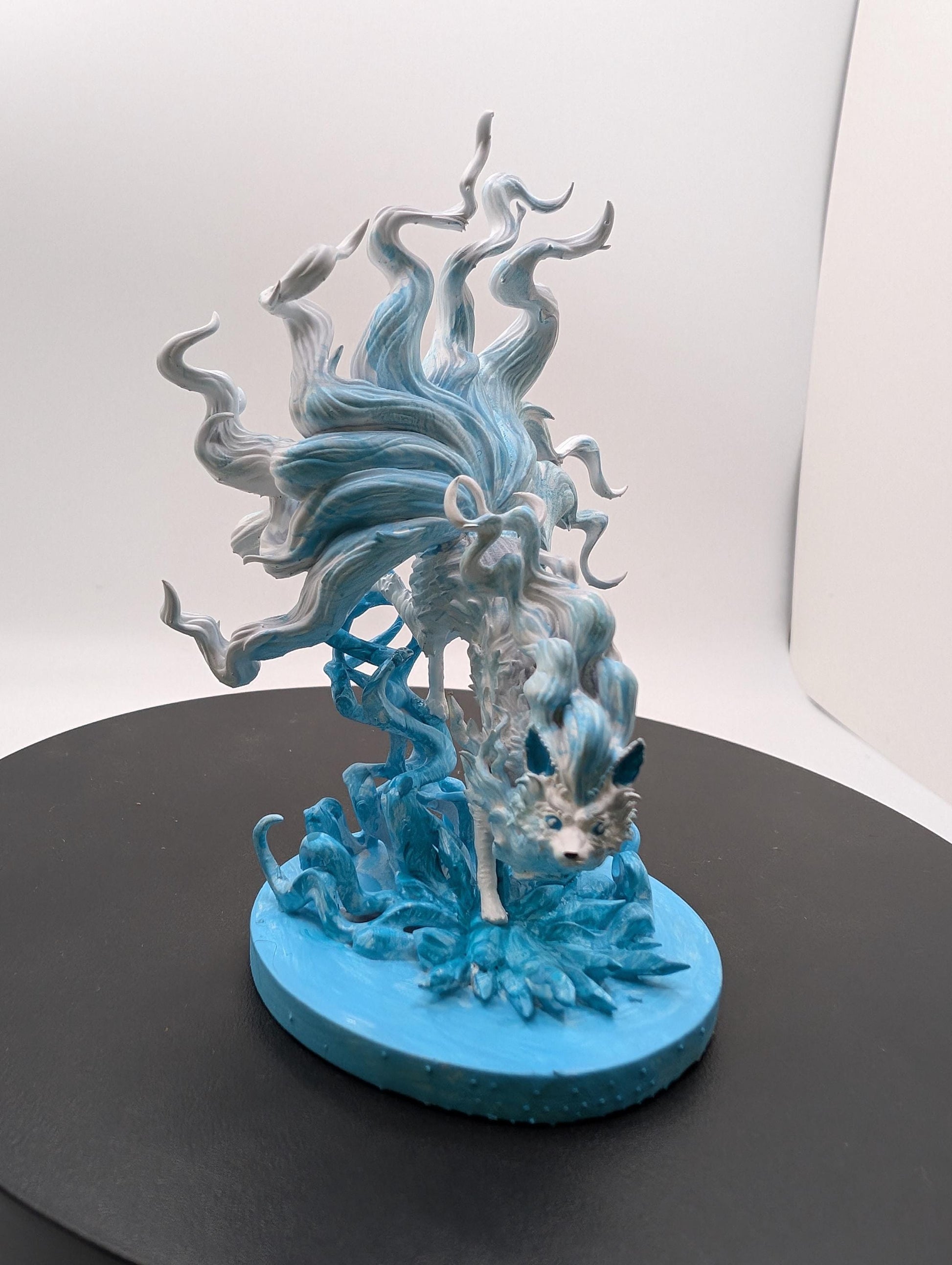 This realistic and stylized ice fox monsters are waiting for adventure. This set includes the small "vulpin" and the evolved "9-tailed fox" minis. The large fox is on a 50 mm base.