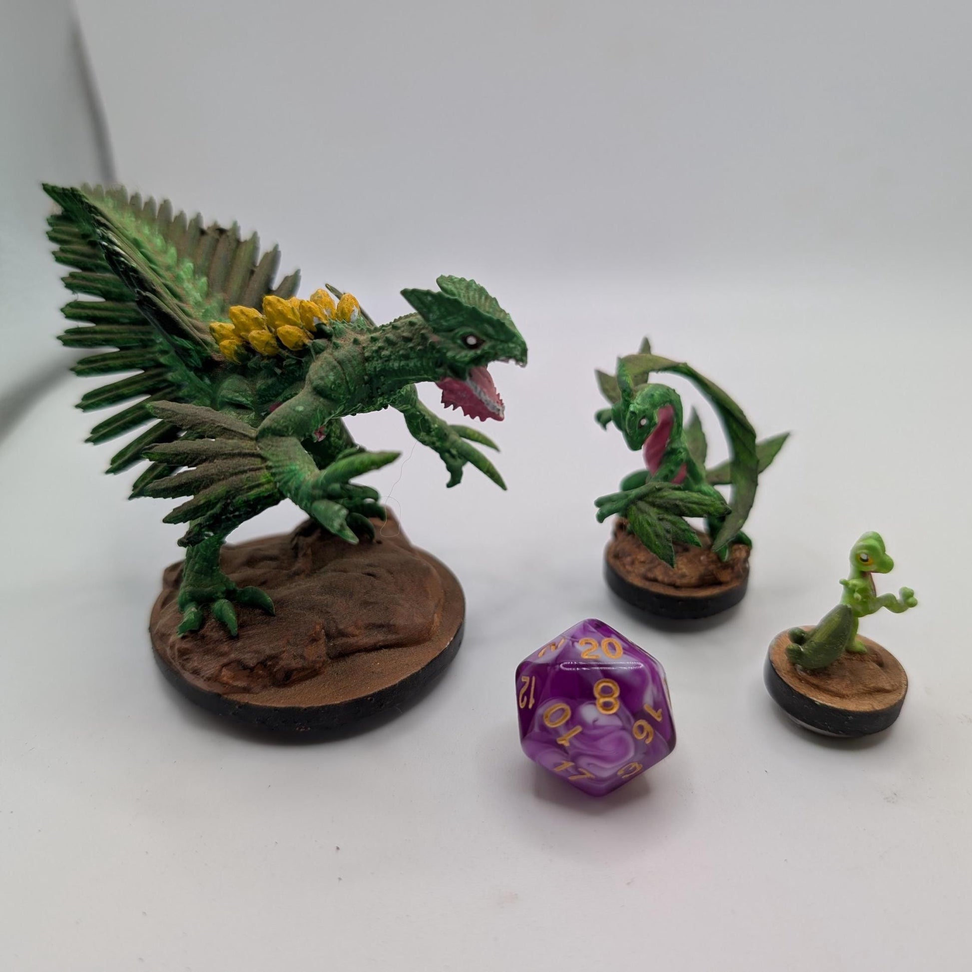 These realistic and fierce leaf gecko grass monsters are ready to go on an adventure! They come on 20 mm, 25 mm, and 50 mm bases respectively.