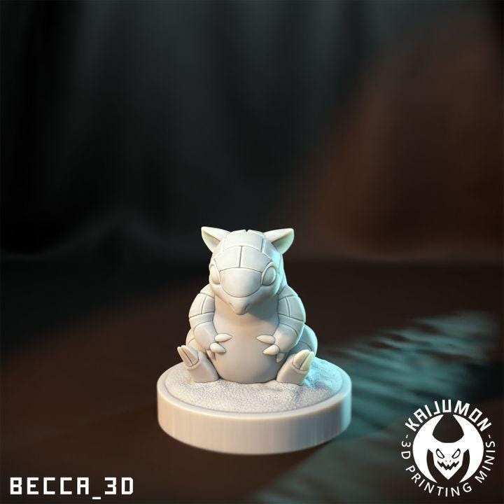 These realistic and stylized pangolin monsters are waiting for adventure. This set includes the small "sand pangolin" and the evolved "slashing shrew" minis. The large pangolin is on a 50 mm base.