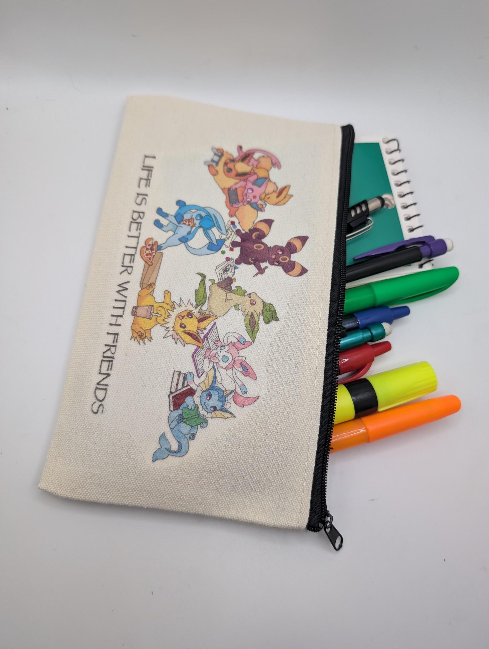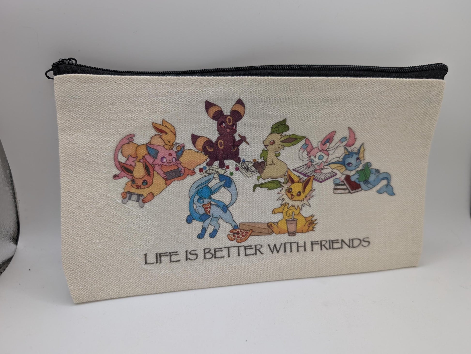 Friendship is unquestionably one of the best parts of life! These adorable pocket monster evolutions are enjoying one another's company - whether playing video games, reading together, snacking and chatting, or enjoying a role-playing game! Celebrate friendship by sharing this bag with your own friend group!