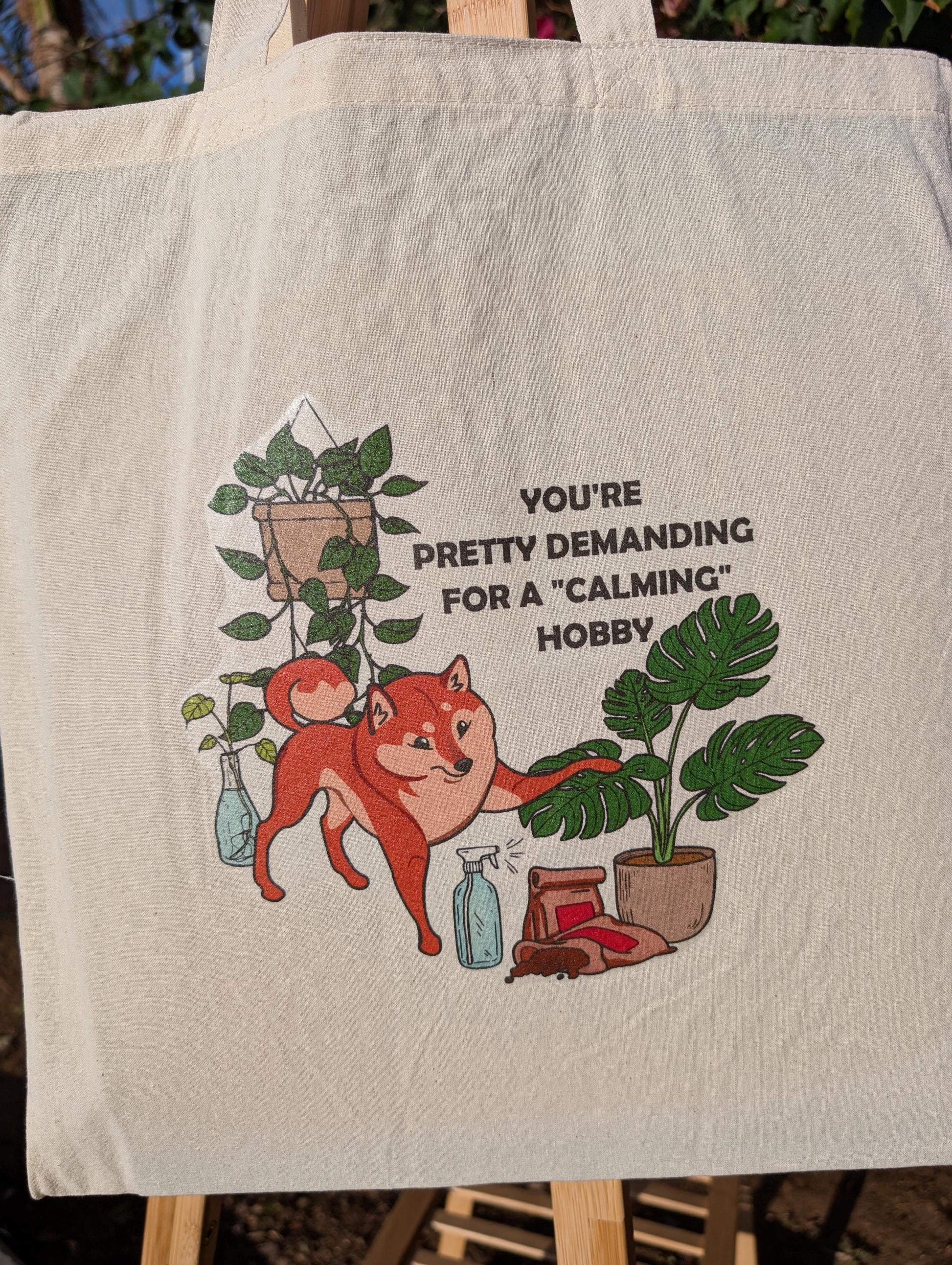 As any plant owner knows (whether a black thumb or a seasoned veteran), plant care can be hard! While plants unquestionably bring joy, they can also be time-consuming and demanding little creatures. Our nerdy tote bags are lightweight and great for carrying some snacks or groceries, school supplies, and essentials for your daily adventures. They are hand-made and measure 16 inches tall and 15 inches wide (not including the handles).