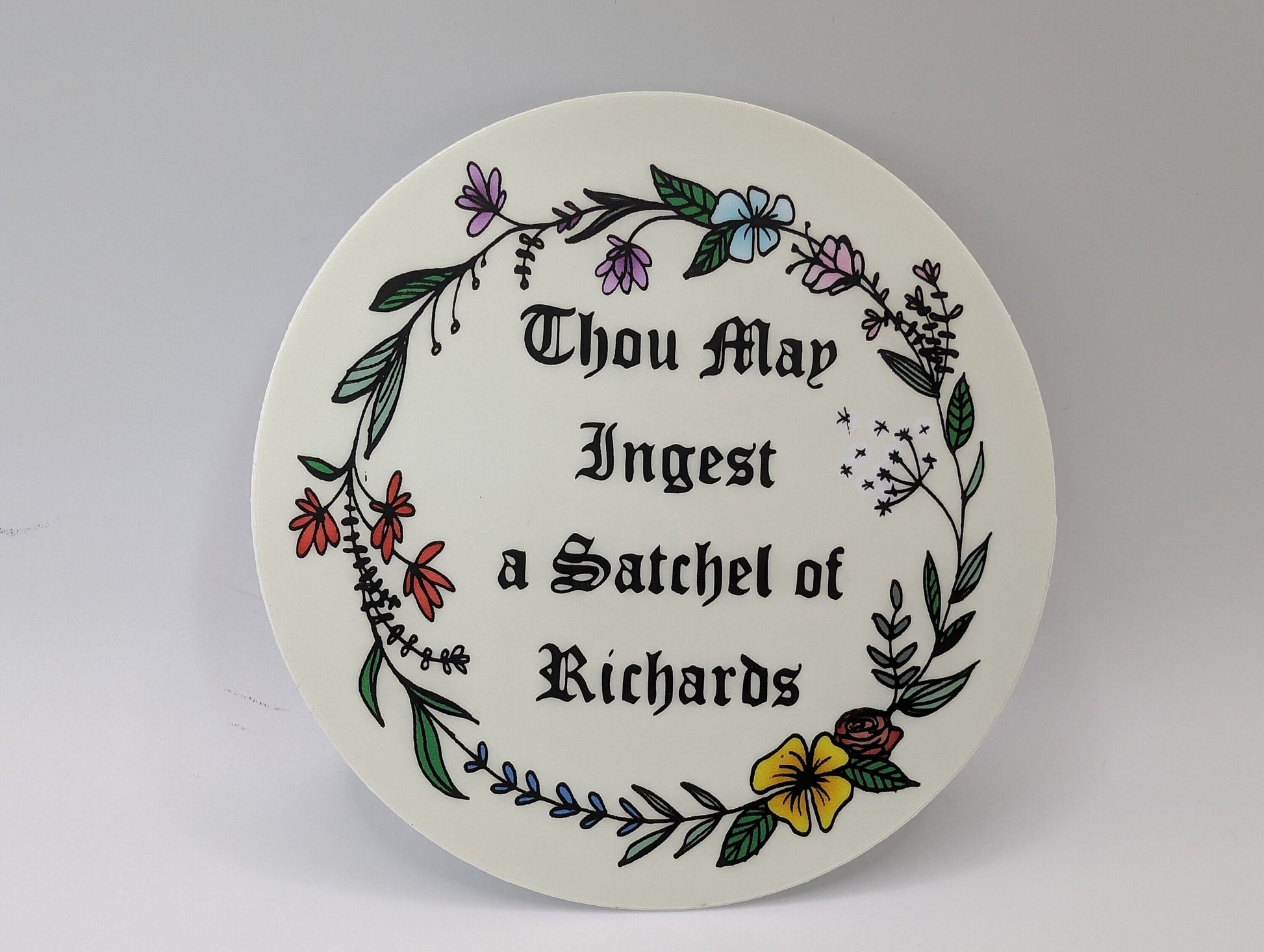 Ever wish to politely insult someone in Old English? Now you can! The perfect gift for any renaissance fan or friend with an adult sense of humor. Don't get the meaning? Well...a satchel is another word for a bag, and the nickname for someone called Richard is... (the rest is on your own for the sake of the algorithm).