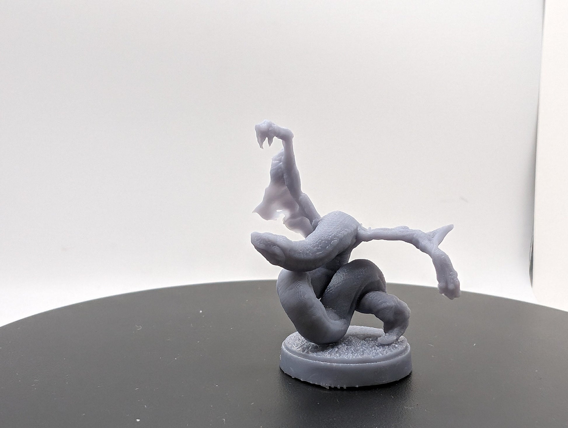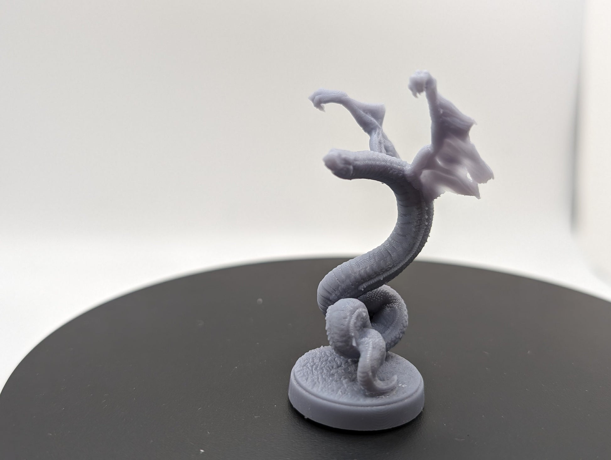 The Deathfang Constrictor Snake comes on a simple 77mm base. The 4 Shriiks come in 32mm Scale on custom 25mm bases.