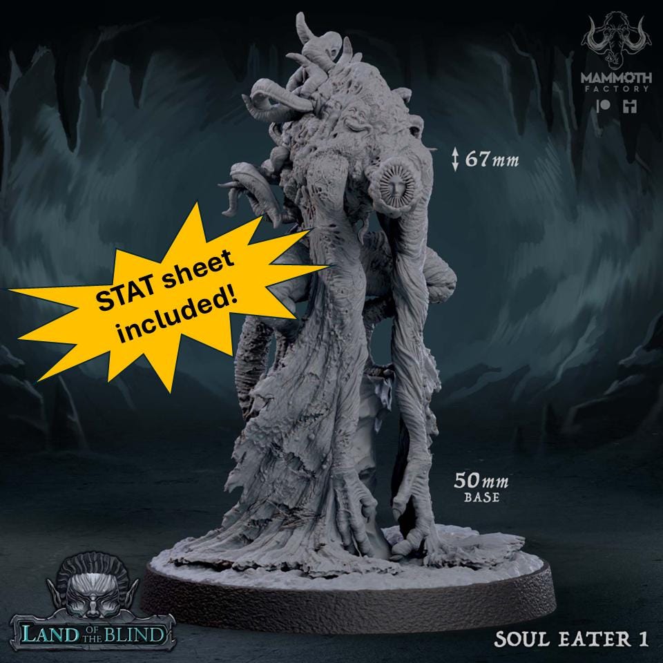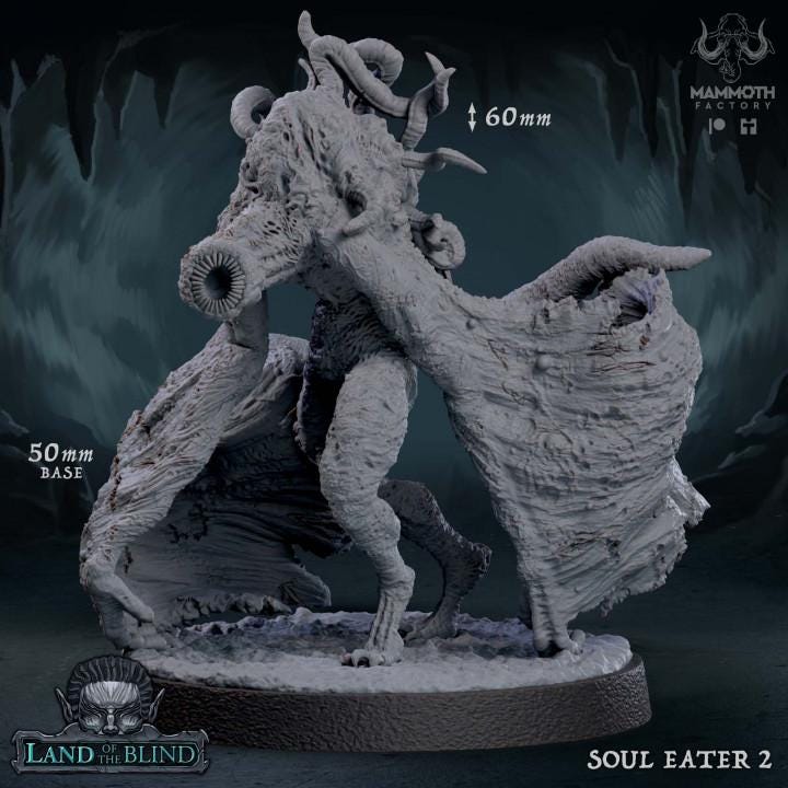 The soul eater will be cause for alarm of any adventurer, with the tormented faces of his victims visible throughout their body.