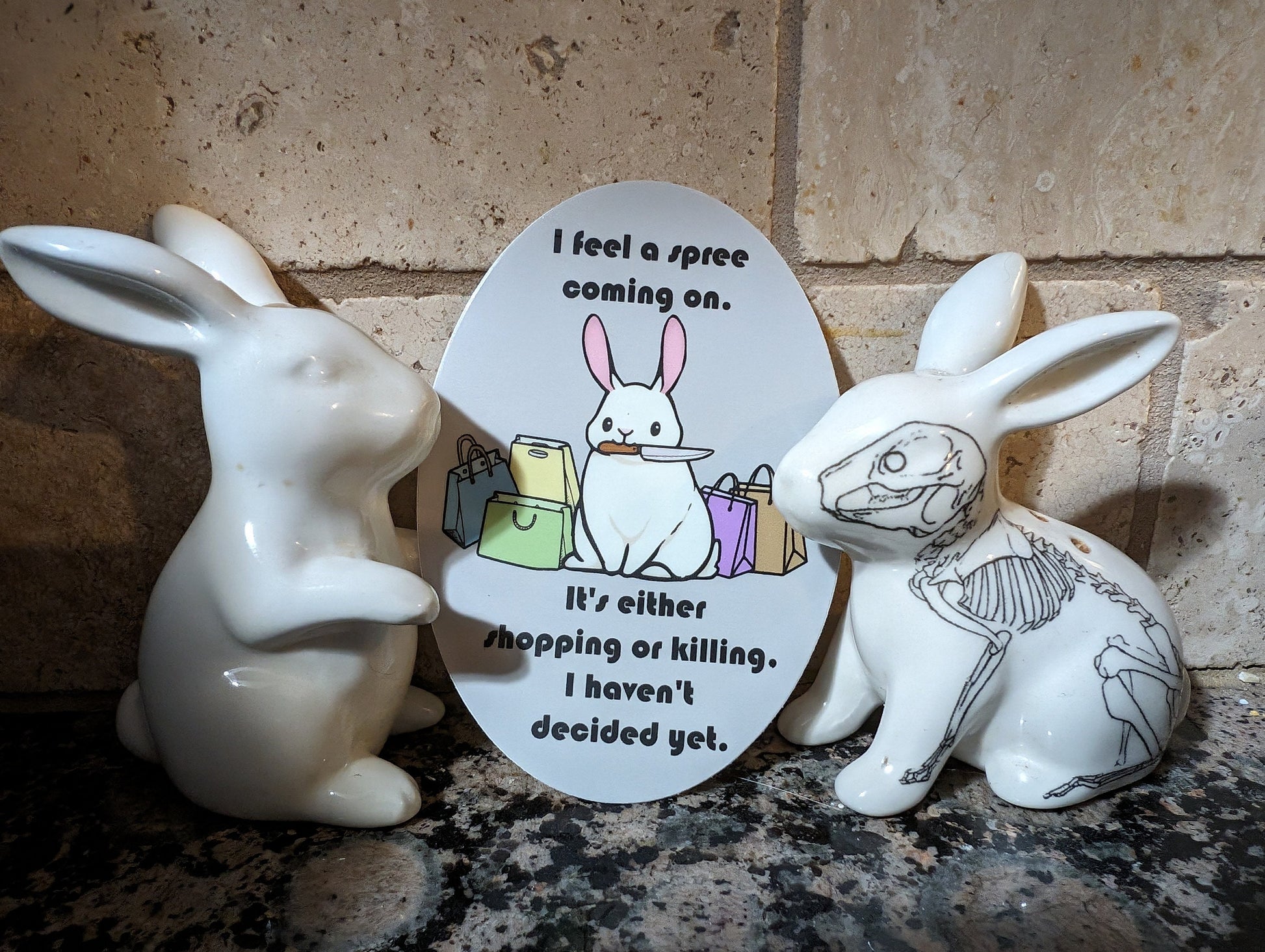 Some days can be very trying and can push us to our limits. In these times, you might be tempted to go on a spree (whether it's a shopping spree or a killing spree is undetermined). This humerous die-cut sticker is made of durable vinyl to help protect it from scratches, water, and sunlight. It measures 4 x 2.8 inches. I have drawn this design myself, but it is printed by stickermule.com to ensure a high-quality product.