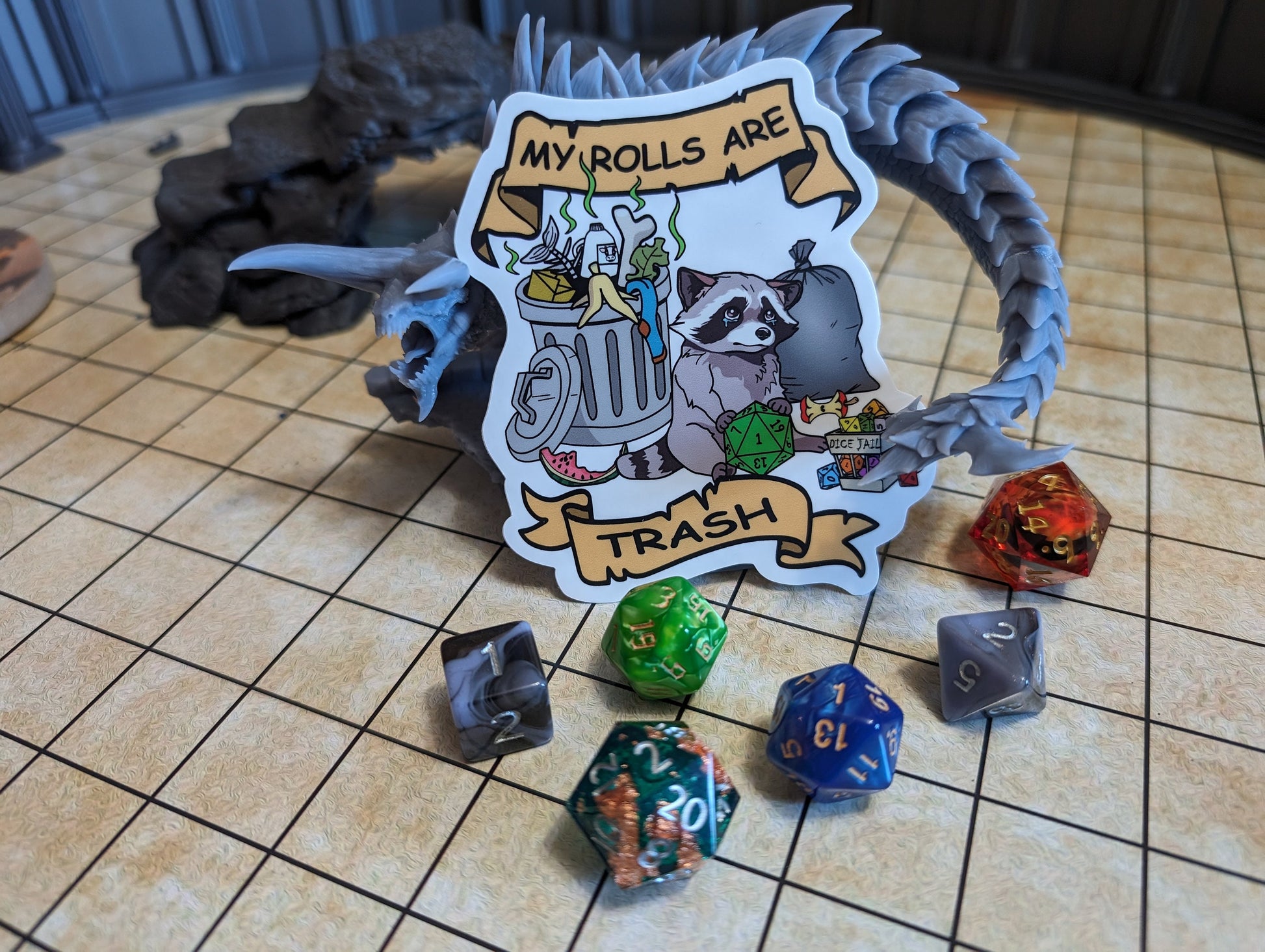 As any good gamer knows...sometimes your dice rolls are glorious and legendary and other times they are absolute garbage. Celebrate your "trash rolls" with this cute raccoon (aka trash panda) who feels your pain.