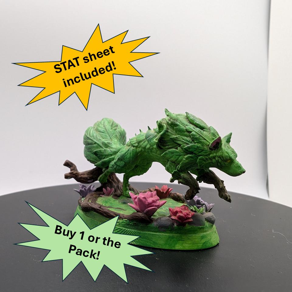 These Fae wolves made of plants and leaves still behave like wolves, using pack tactics to their advantage. The bases are the same, but the pose varies (see the labeled picture).